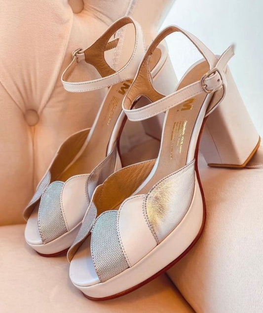 SANDALIA DE CUERO PARA NOVIA Y FIESTA CALENDULA CALLIARI TACO DE 11 CMS Y PLATAFORMA DE 5,5 CMS