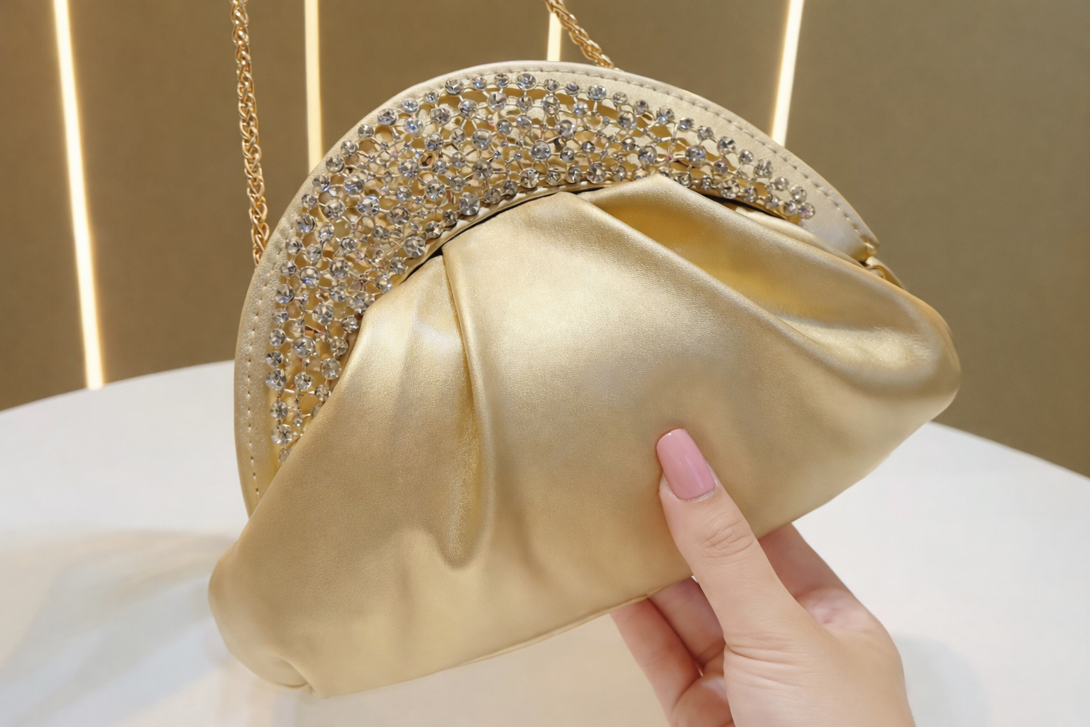 Un bolso que combina elegancia, suavidad y brillo en cada detalle ✨