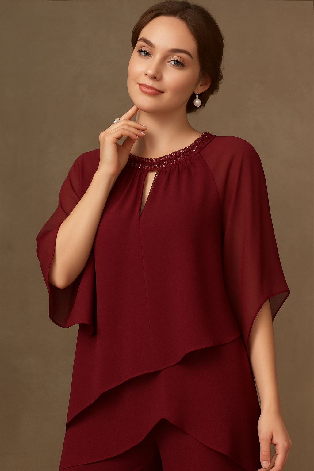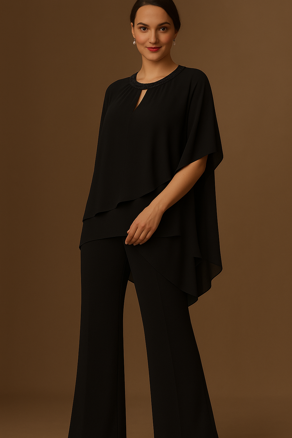 Este elegante traje de fiesta Berta destaca por su delicada aplicación de pedrería en el cuello, que aporta un toque sofisticado y brillante. Disponible en tallas 44 y 46, ofrece un ajuste cómodo y favorecedor para ocasiones especiales. Ideal para quienes buscan un diseño refinado que combine estilo y distinción en eventos formales.