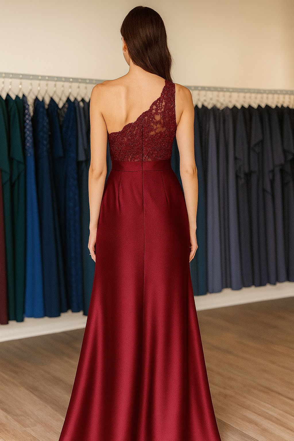 VESTIDO DE FIESTA ANASTASYA ASIMETRICO CON ENCAJE BORDADO