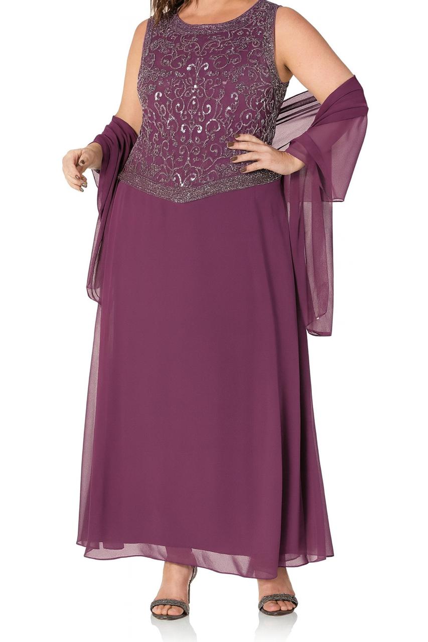 Vestido de fiesta Brigitte con brillo superior y falda en gasa y echarpe