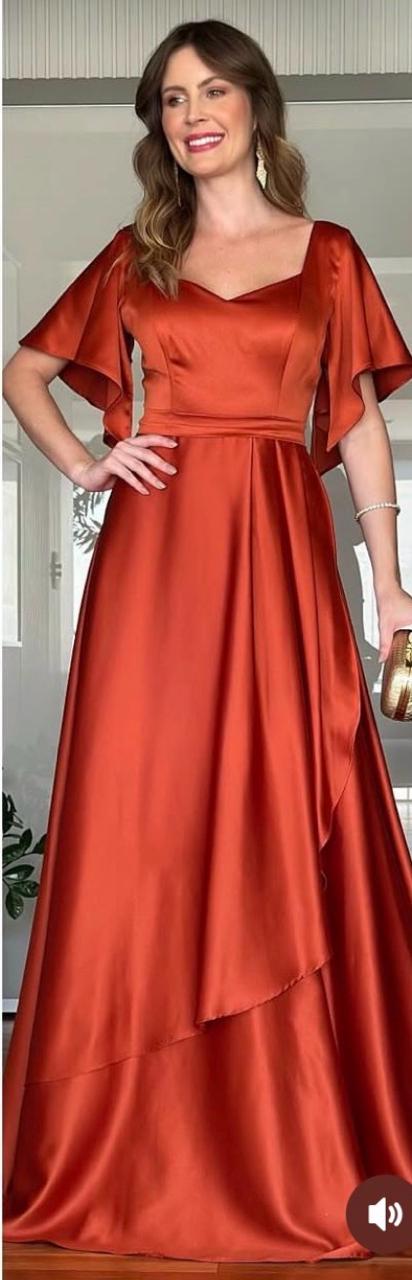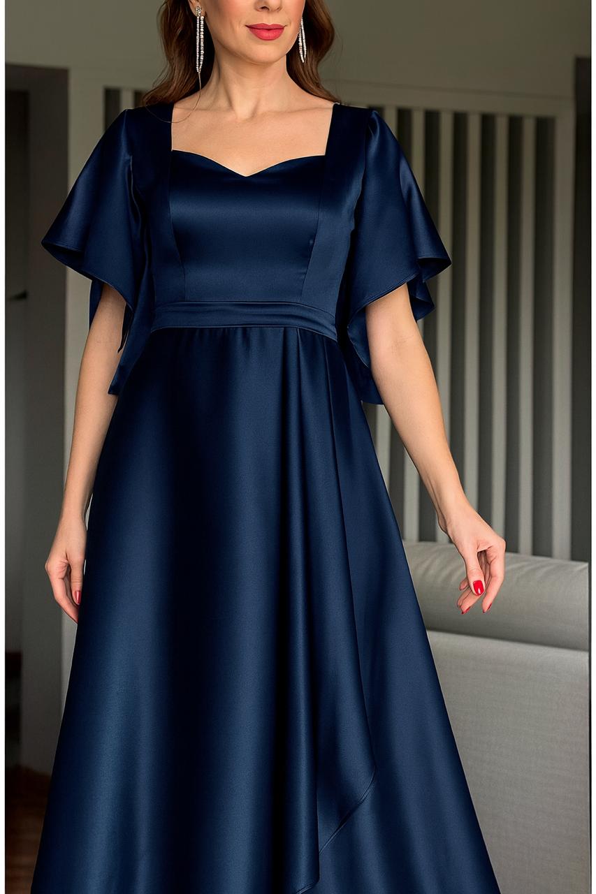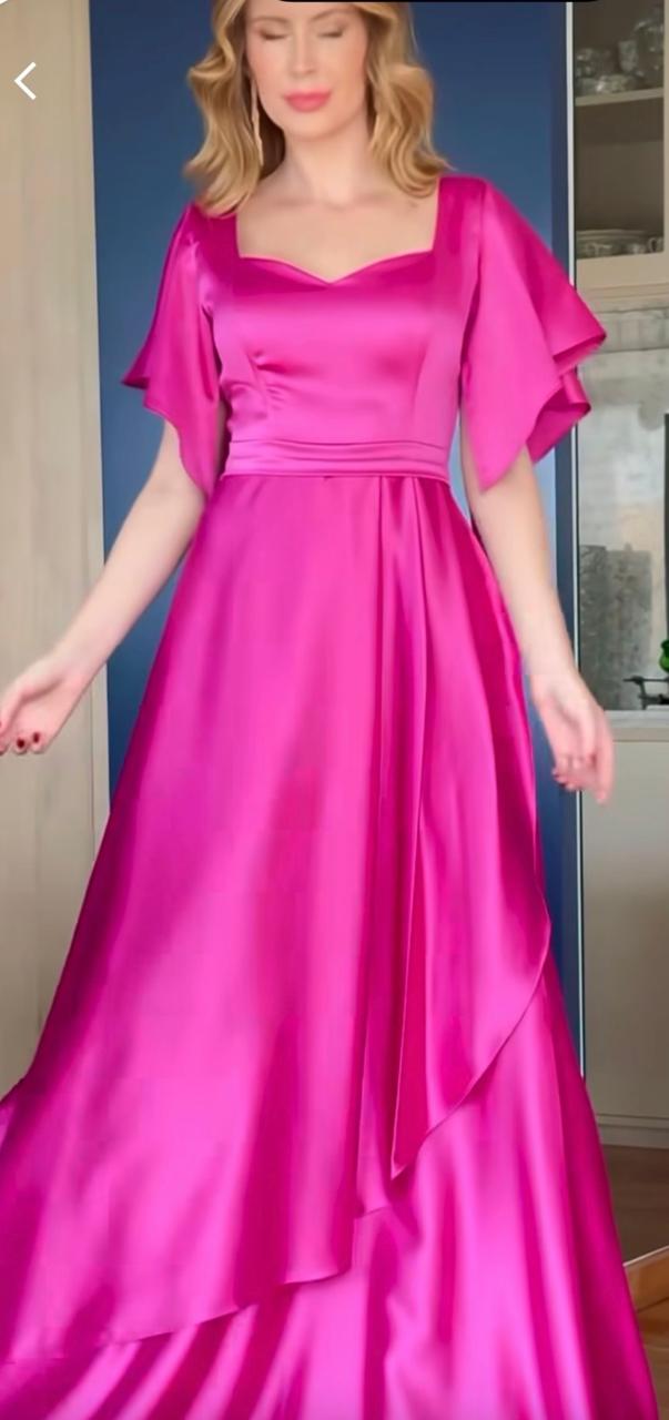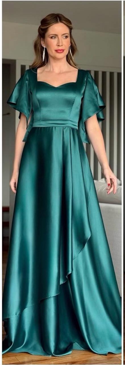 Vestido de fiesta Amanda en raso flex ,mangas y falda en capas