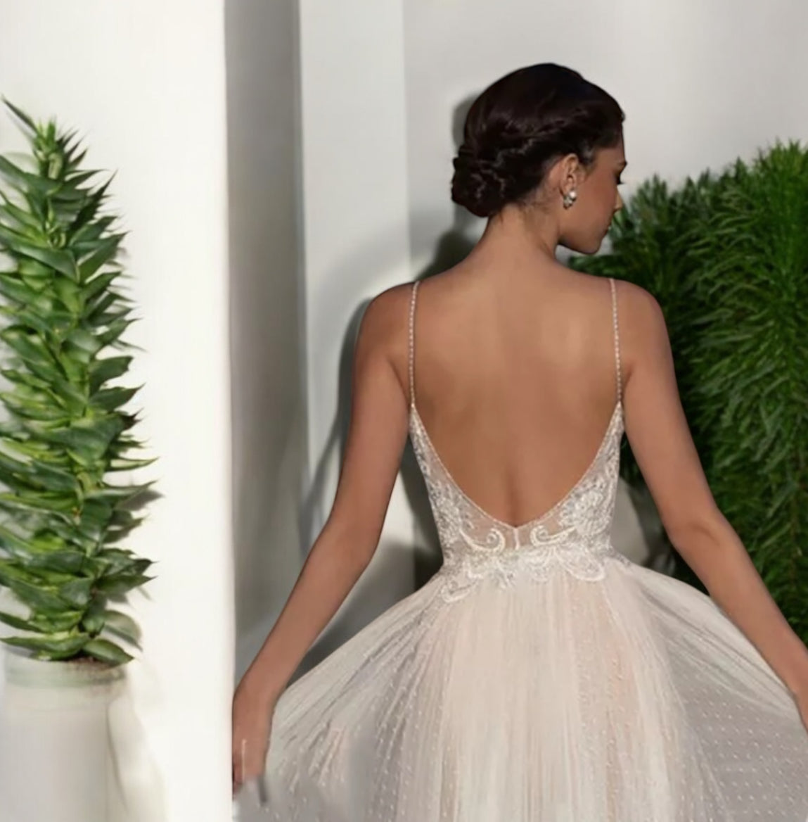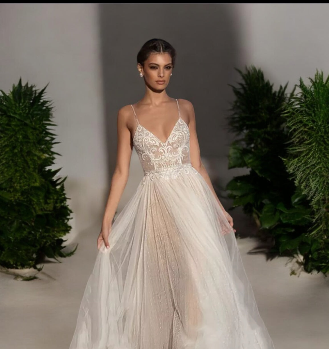 Este encantador vestido de novia es la encarnación de la elegancia y la sofisticación. Confeccionado en delicado encaje y tul, este vestido presenta un diseño atemporal que hará que cada novia se sienta especial en su gran día.