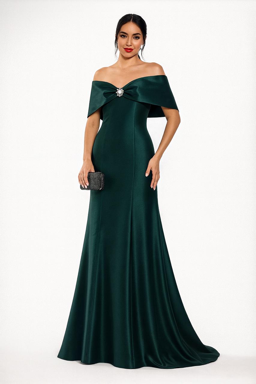 Vestido de fiesta Mandy hombros descubiertos y cuello en raso