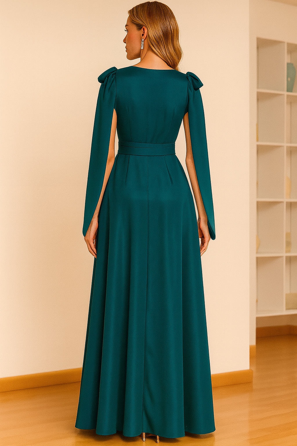 VESTIDO DE FIESTA MANUELA ALITAS Y ESCOTE DRAPEADO
