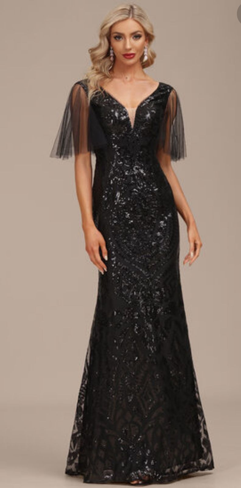 VESTIDO DE FIESTA MARION EN COLOR NEGRO CON LENTEJUELAS Y TALLA 40