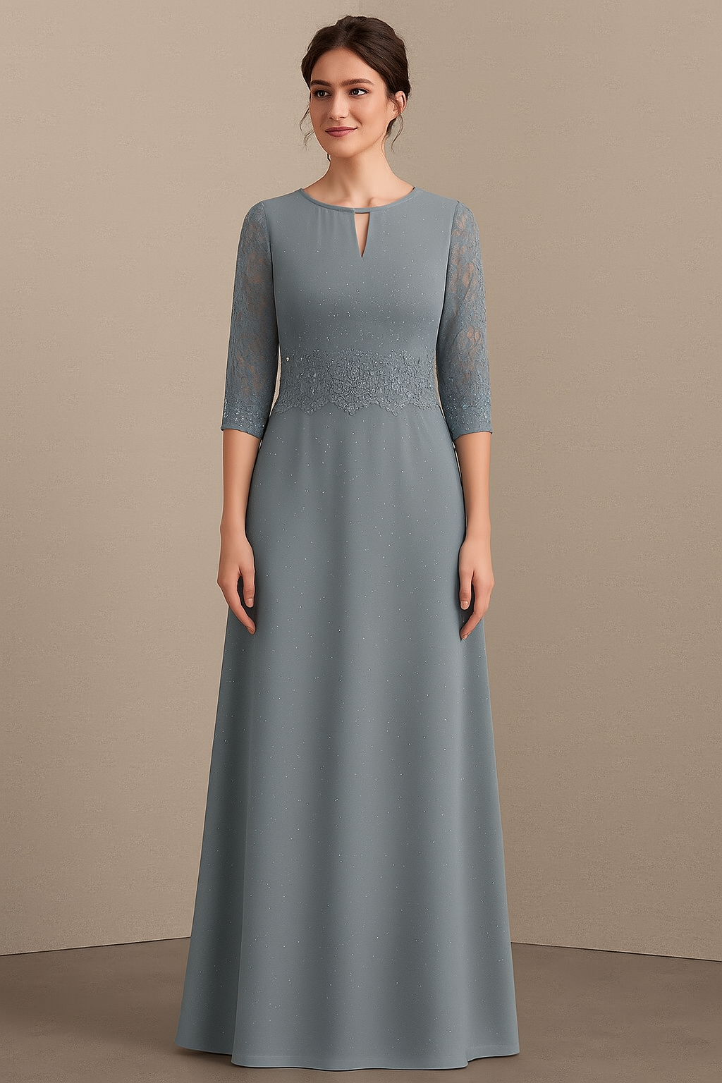 Este vestido MANE TALLA 44 es perfecto para cualquier ocasión. Con mangas 3/4 de encaje transparente, te hará lucir elegante y sofisticada. Además, su cintura con aplicaciones le da un toque de glamour. ¡Destaca tu estilo con este hermoso vestido!