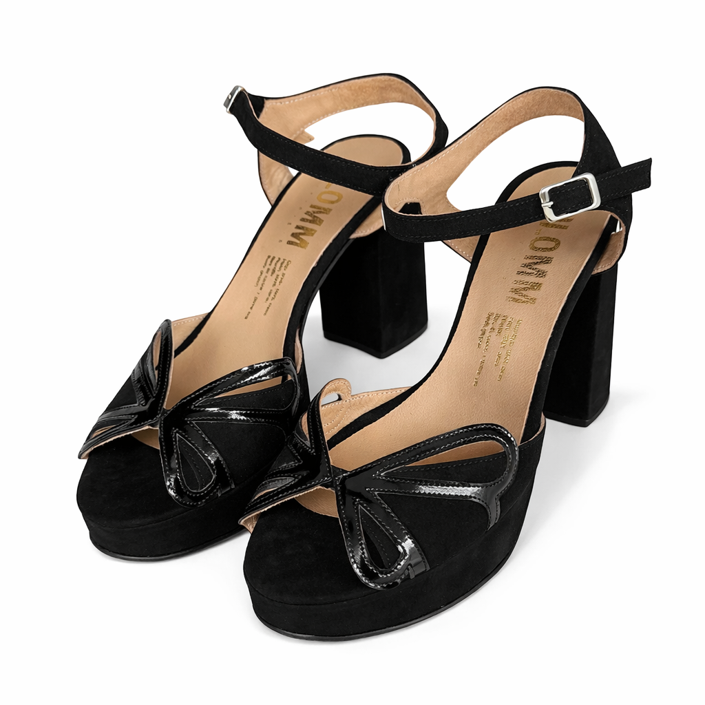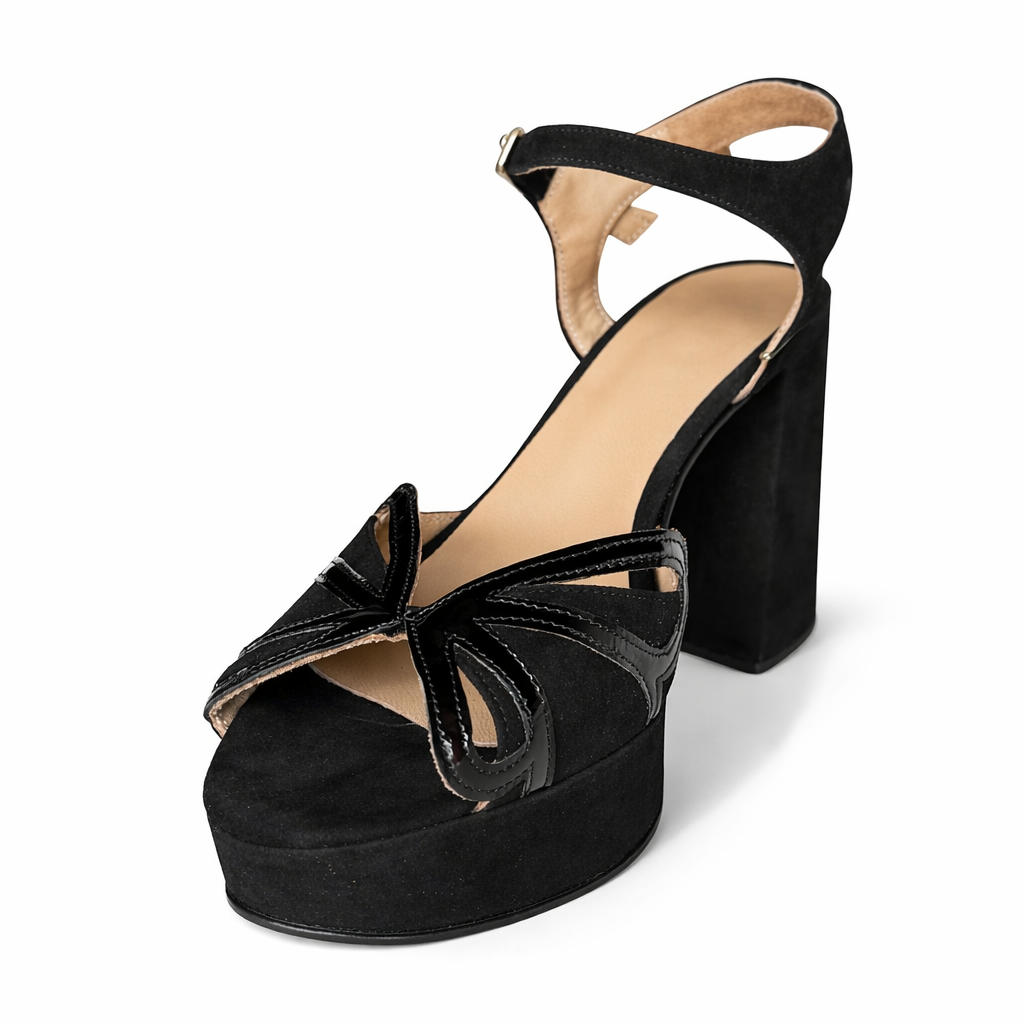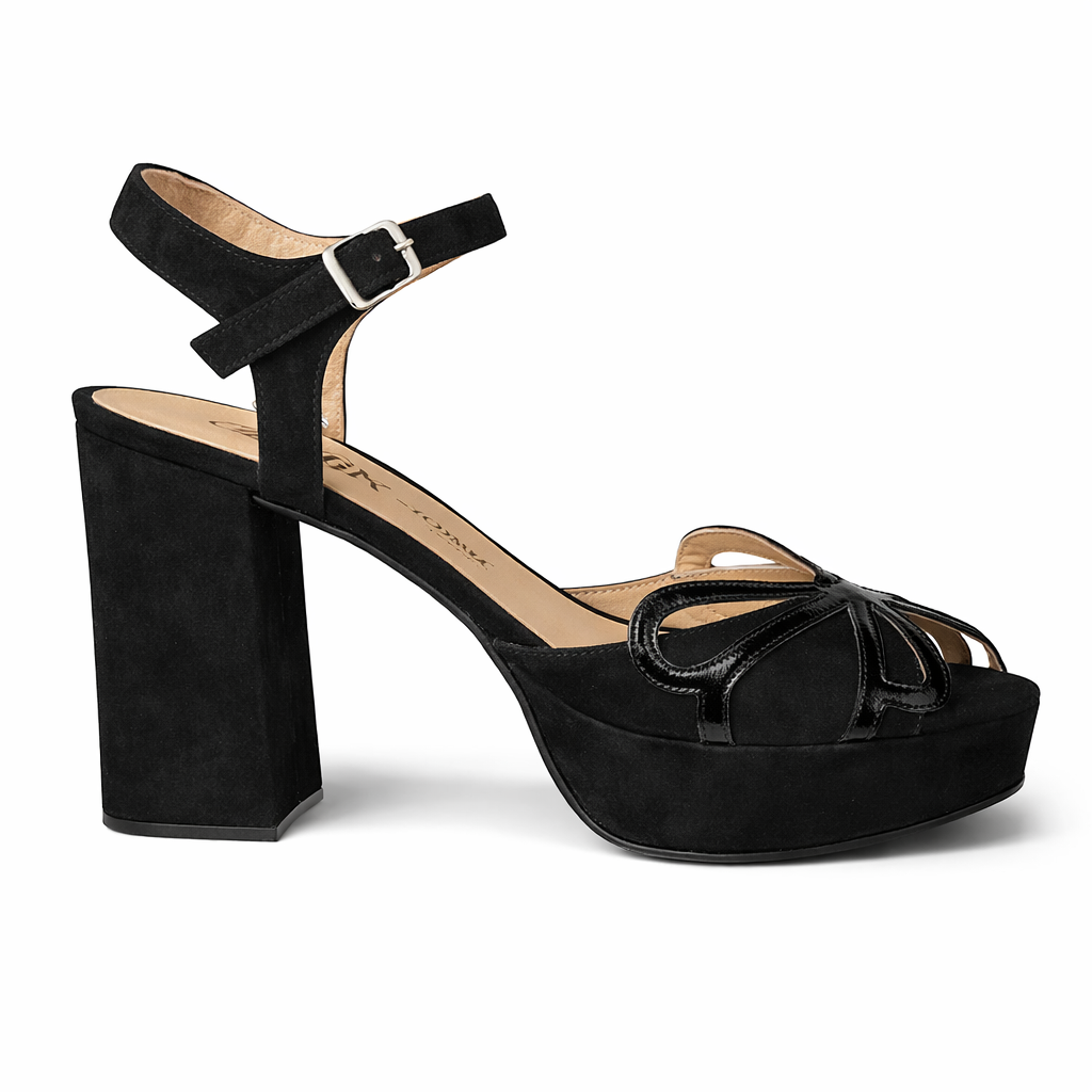 Sandalia de cuero para fiesta Narciso negro taco 9 cms y plataforma 2 cms, procedencia Argentina